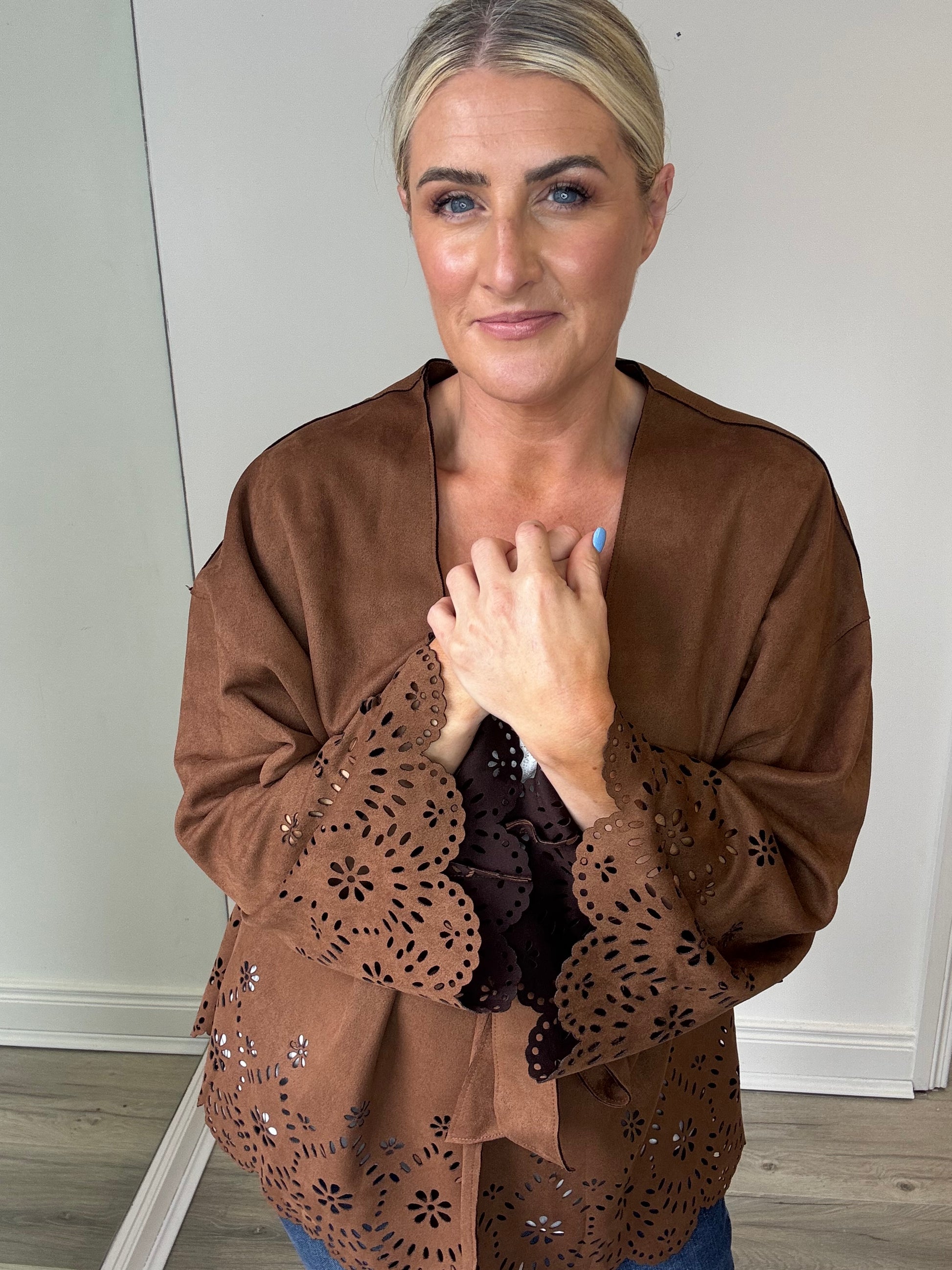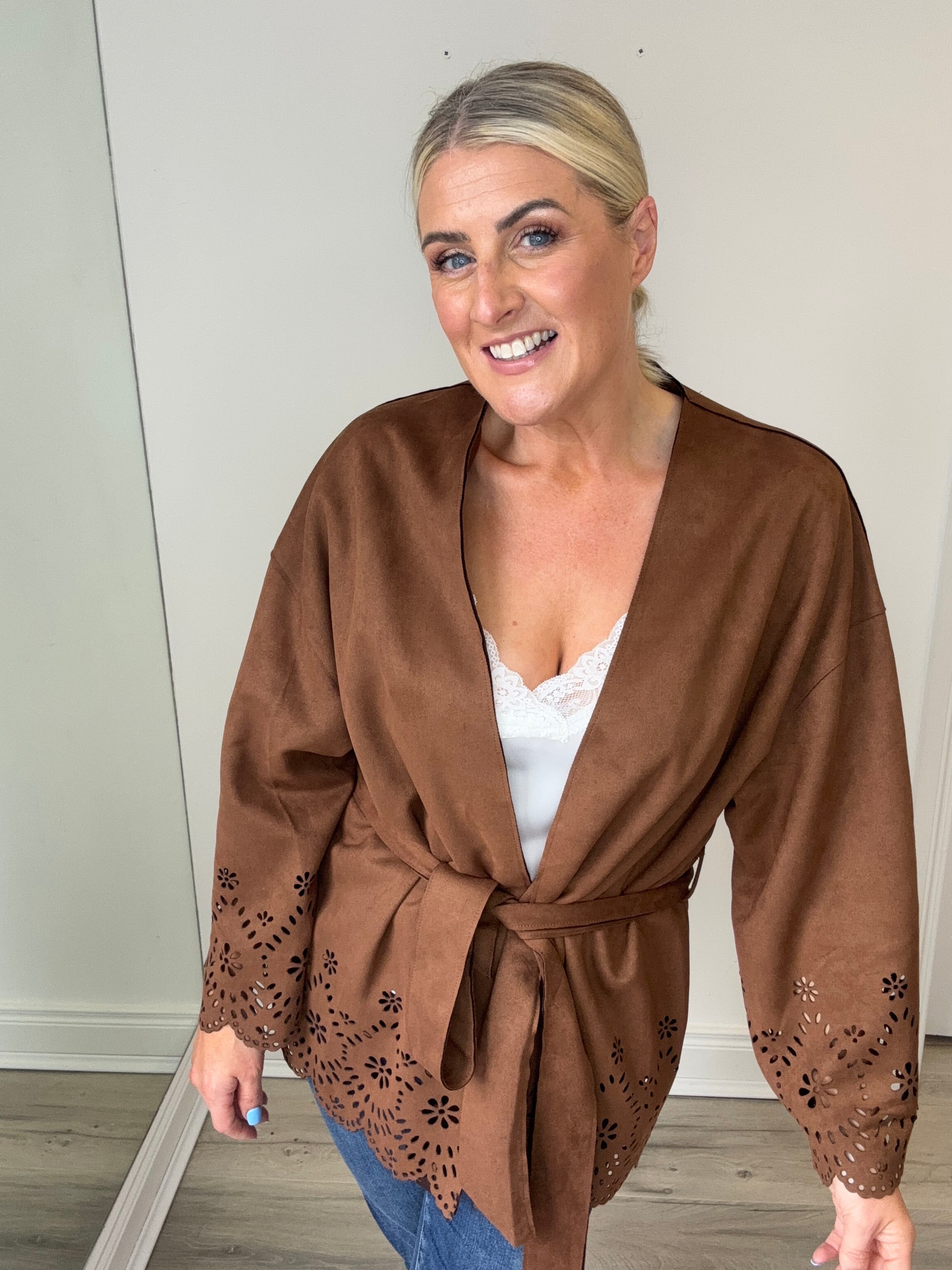 Layer your autumn wardrobe with the Arianna Shacket, a perfect blend of style and comfort. Featuring a belted waist for a flattering silhouette and delicate cut-out lace details at the hem and cuffs, it adds a feminine touch to any look. Ideal for festivals or smart-casual occasions, this shacket brings a warm, autumnal vibe while keeping you effortlessly chic. Elevate your seasonal outfits with this versatile, stylish piece.