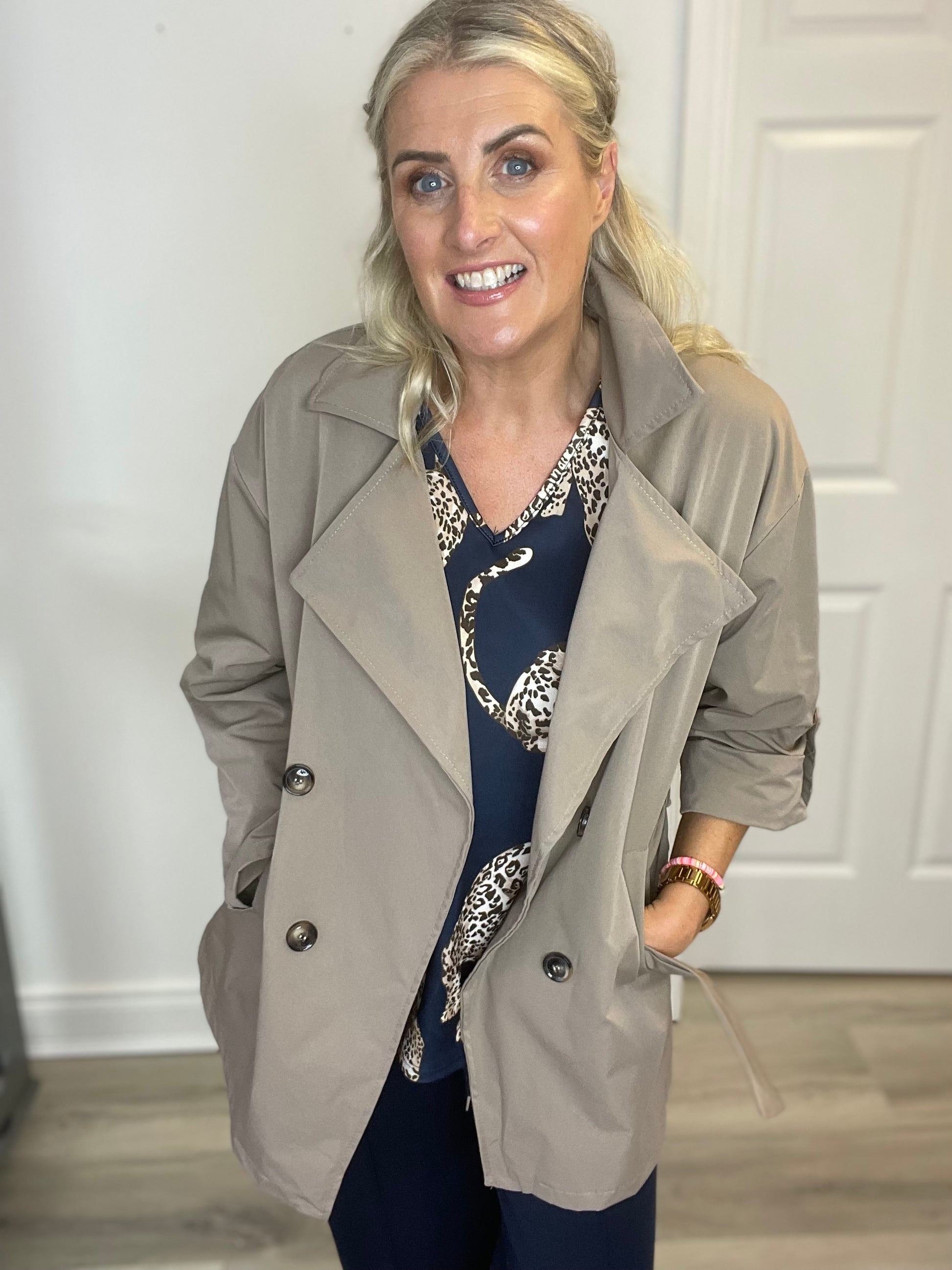 The Carla Trench Jacket offers a refined double-breasted design with a belted waist and buttoned cuffs, combining classic style with functional details. Ideal for autumn and seasonal transitions, its short length and side pockets provide practical comfort for outdoor wear. This jacket balances timeless trench aesthetics with modern versatility, making it an essential piece for expert layering during cooler months.
