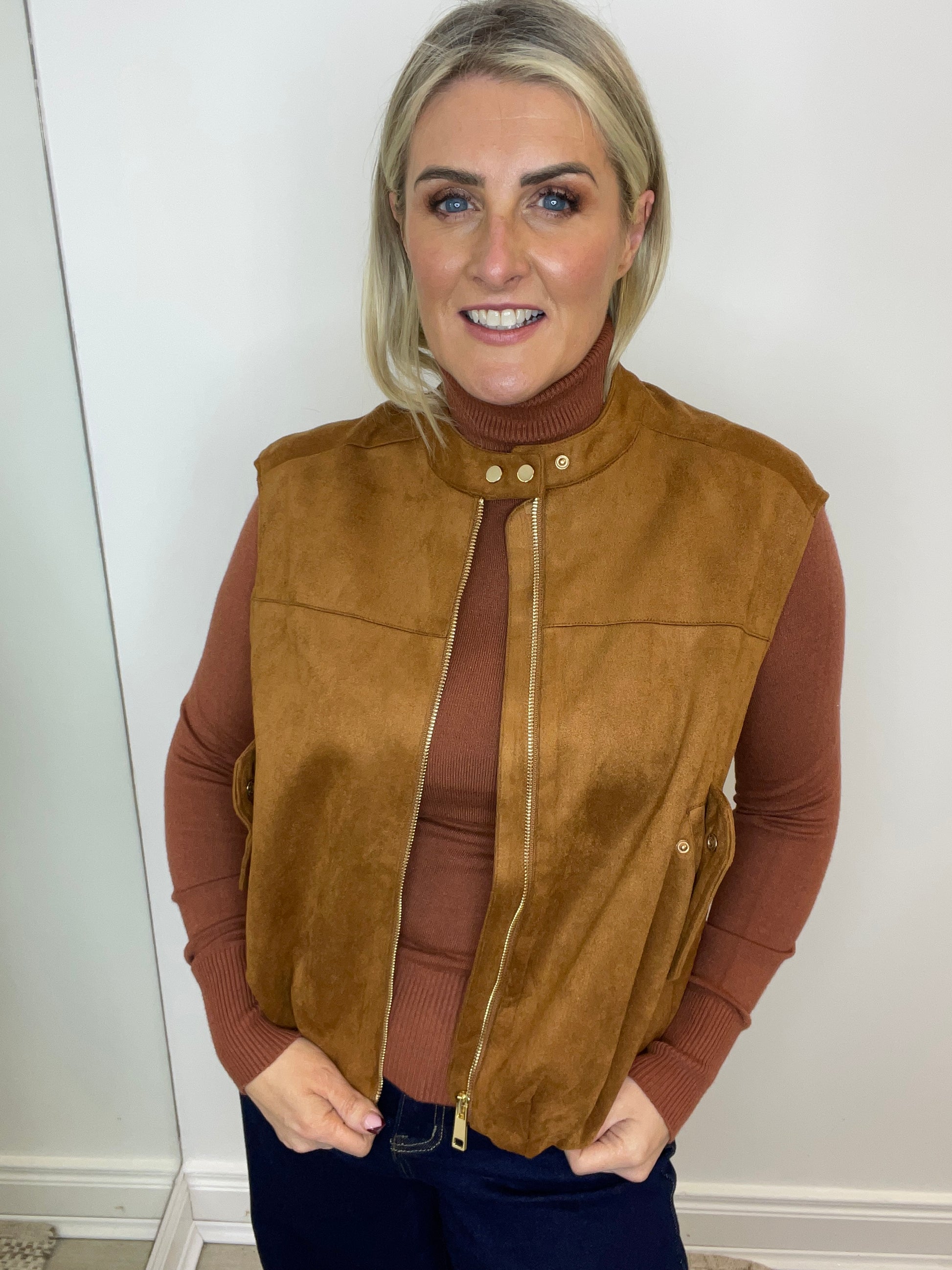 The Geri Suedette Gilet is your go-to layering piece for effortless autumn style. Crafted in soft suedette, this zip-up gilet features practical front pockets and a sleek silhouette that pairs beautifully with everything from knitwear to dresses. Perfect for transitional weather, it adds warmth and texture without bulk, making it an essential addition to your seasonal wardrobe.