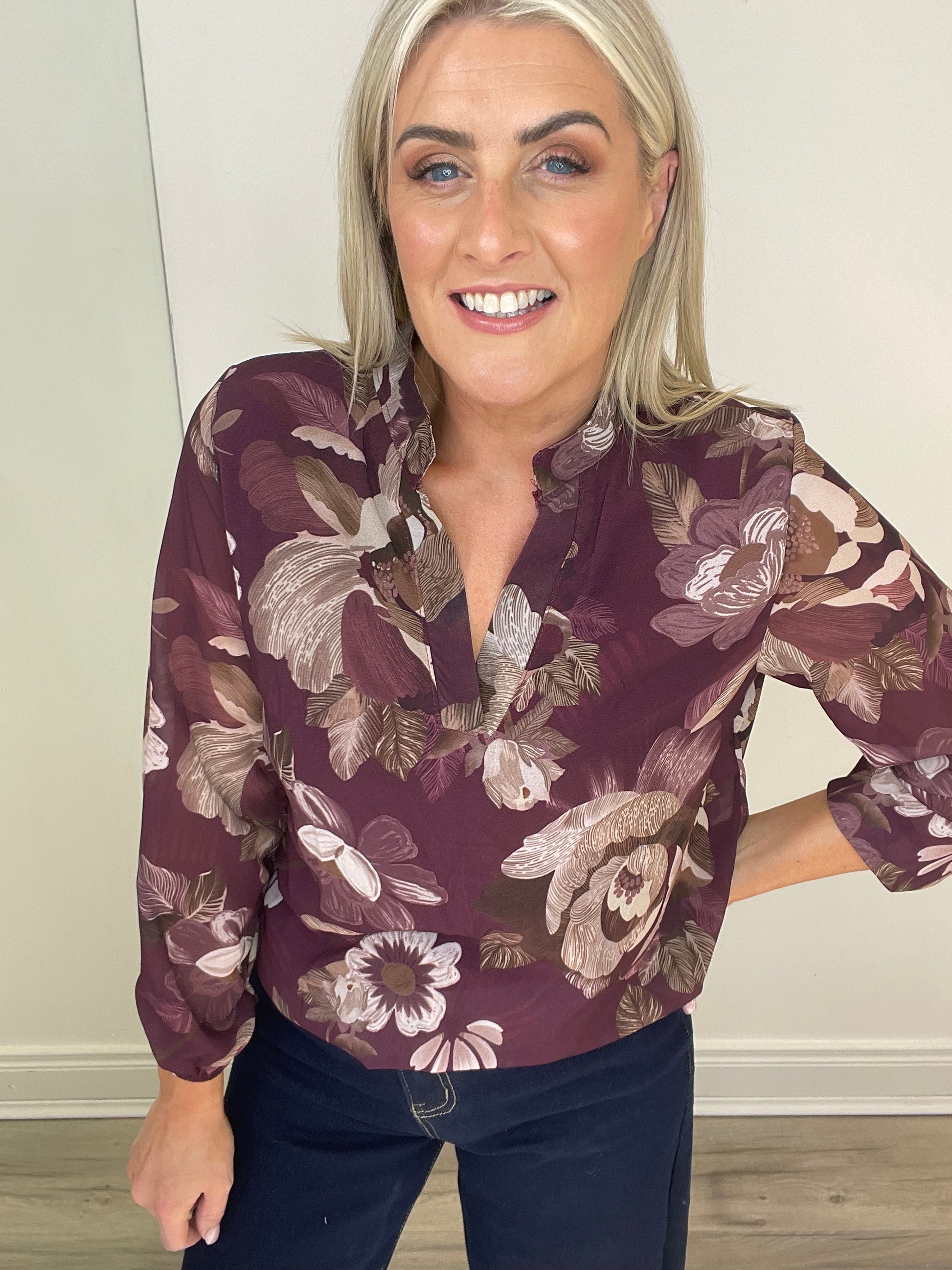 The Mona Top combines a feminine long sleeve silhouette with a delicate floral print, perfect for embracing autumn’s charm. Its flattering V neckline and banded waistband enhance your shape, creating an elegant and comfortable fit. Ideal for layering or wearing on its own, this top effortlessly elevates your seasonal wardrobe with style and grace.
