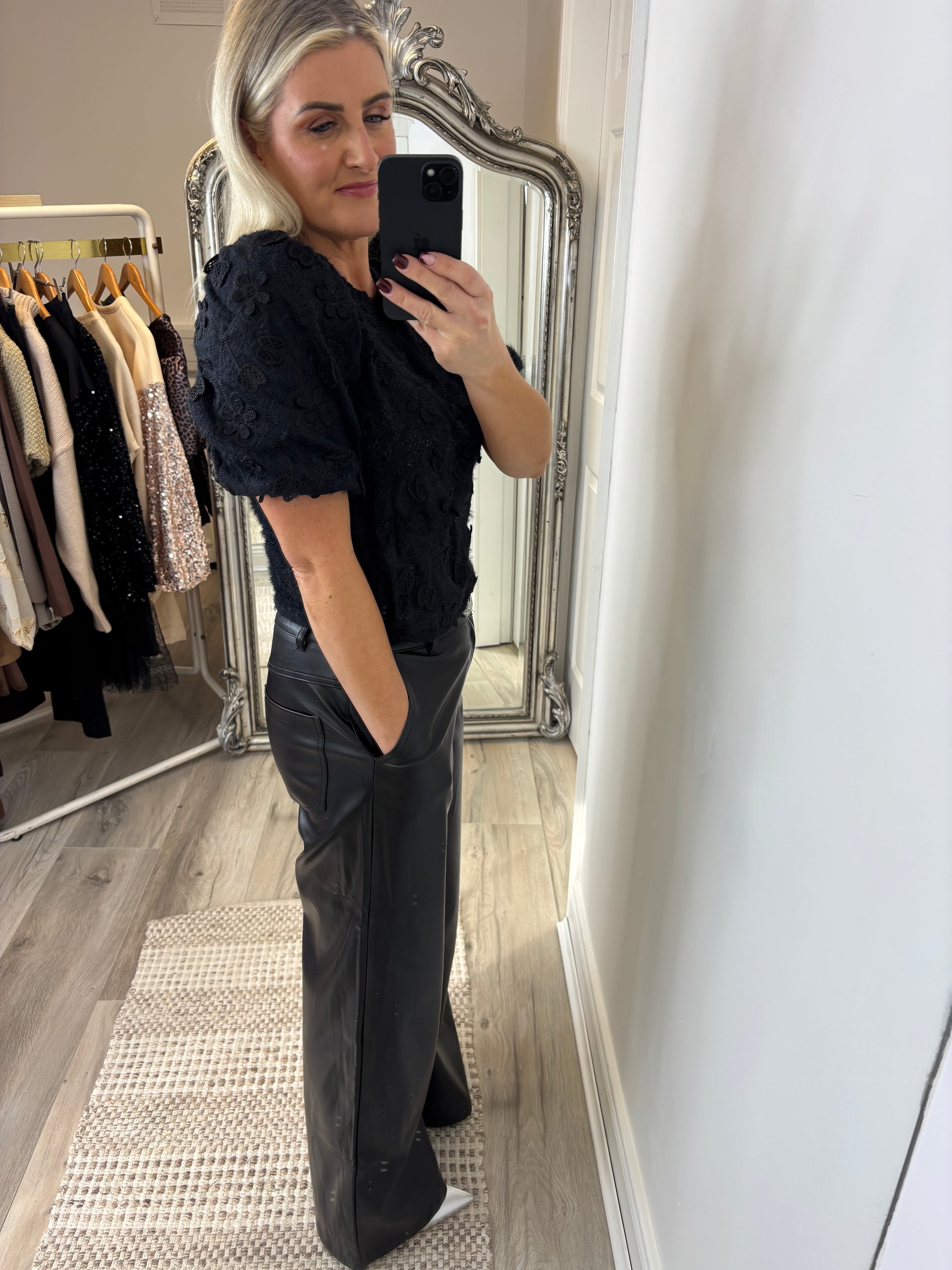 Elevate your wardrobe with the Sorcha Knit Top—a versatile piece that seamlessly transitions from smart casual to special occasions. Crafted from 100% polyester for easy care and lasting comfort, this short-sleeved top features delicate floral embellishments that add a touch of feminine sophistication. Whether you're dressing up for an evening out or keeping it polished at the office, the Sorcha delivers effortless style and understated elegance.